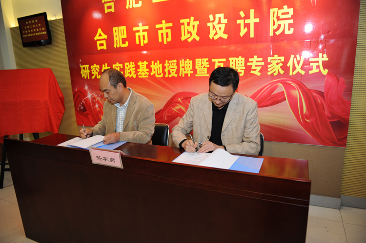 合工大教學辦張寶主任和我院成國保副院長代表雙方簽署了合肥工業(yè)大學與合肥市市政設(shè)計院共建研究生聯(lián)合培養(yǎng)實踐基地的協(xié)議,朱大勇校長和尹新院長共同為研究生聯(lián)合培養(yǎng)實踐基地揭牌,并作為雙方負責人舉行了專家聘任儀式。我院聘請石琴、胡真虎、周國艷作為我院技術(shù)顧問,三位教授都是在在行業(yè)享有盛譽的知名專家。合工大聘任我院唐振忠、成國保、吳禎作為兼職碩士生導師。